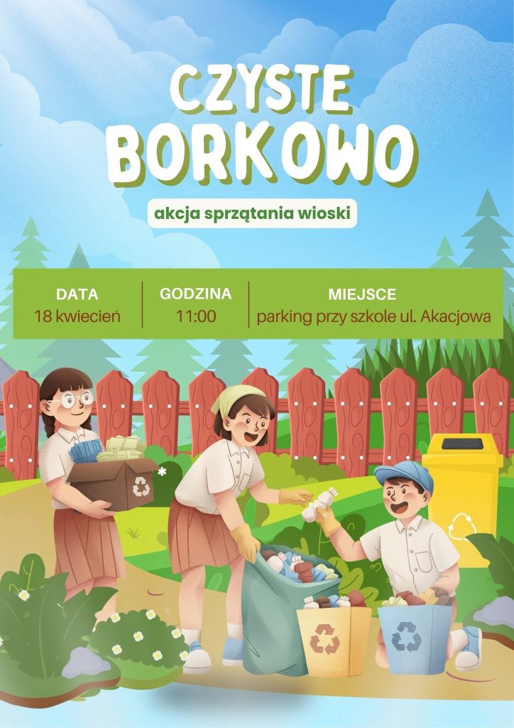 Zapraszamy mieszkańców Borkowa do udziału w akcji sprzątania naszej miejscowości. Jest to inicjatywa w ramach ogólnopolskiej Operacji Czysta Rzeka Spotykamy się 18 kwietnia 2026r. o godz. 11:00 przy stawie przy ul. Kasztanowej, skąd wyruszymy, by wspólnie oczyścić nasze ulice i tereny zielone. Każda para rąk się przyda, nawet jeśli masz tylko godzinę.